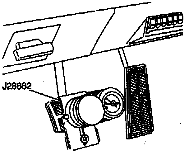 B. Install brake pedal effort gage J 28662 into brake pedal.