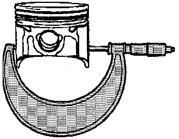 12. Measure the piston diameter. When measuring piston for size or taper, measurement must be made as shown with the piston pin removed. If worn or damaged, replace with a standard or oversize piston.