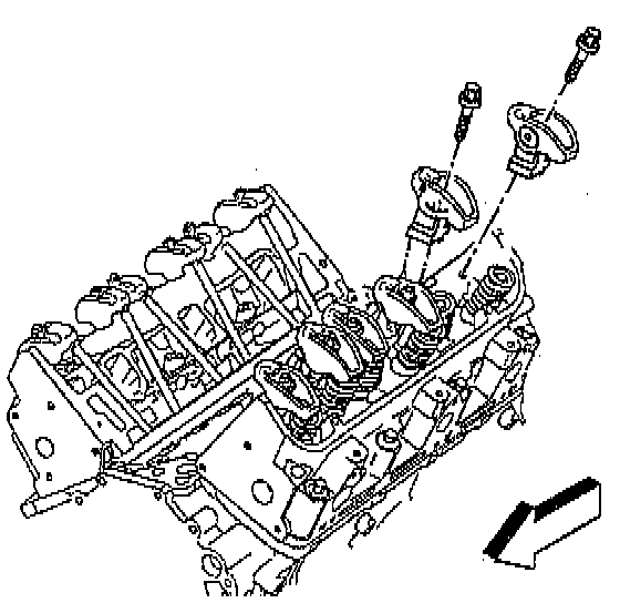 3. Install the rocker arm bolt. Tighten the bolt to 14 Nm (124 inch lbs.) plus 30 degrees.