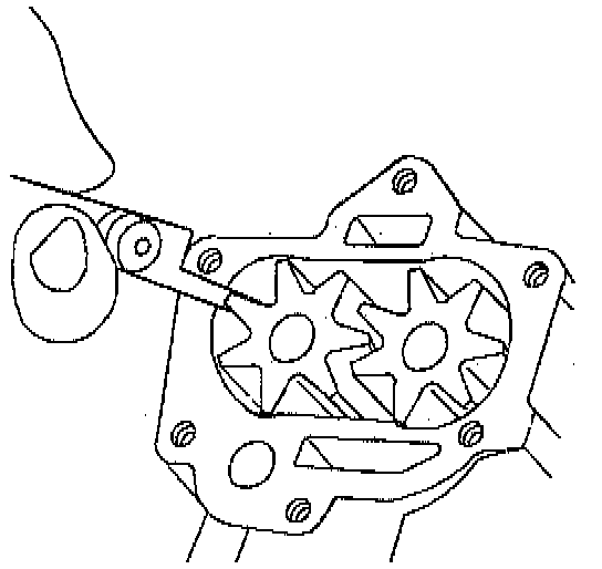 10. Measure the oil pump gear lash. Install the gears, and measure in several places.