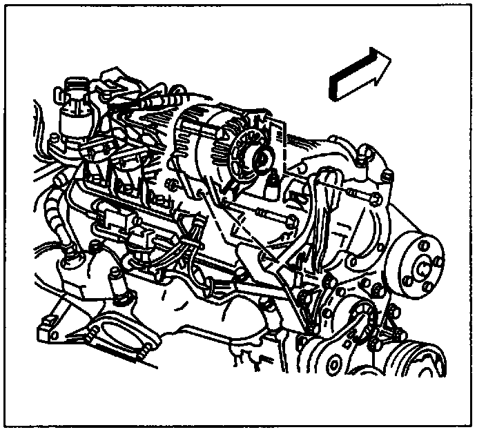 6. Loosen generator front and rear braces from intake manifold.