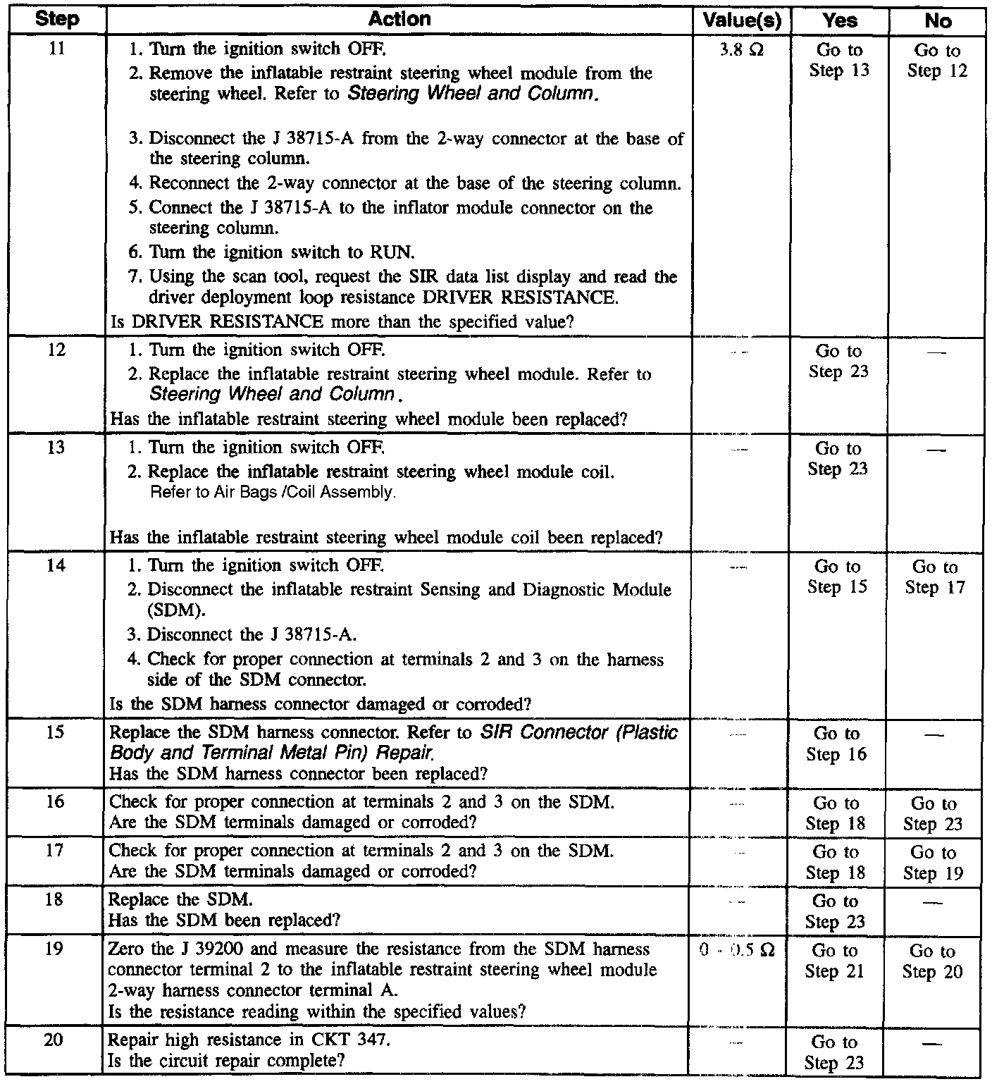 11. This test determines whether the malfunction is in the inflatable restraint steering wheel module coil or the inflatable restraint steering wheel module.