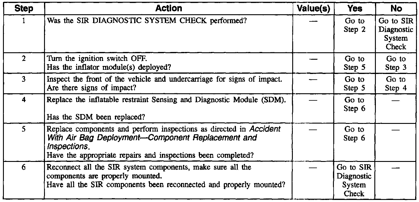 Failure to follow the correct procedure could cause air bag deployment, personal injury, or unnecessary SIR system repairs.