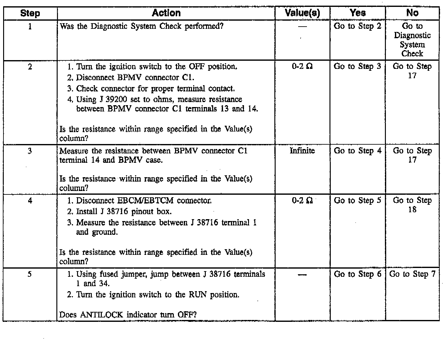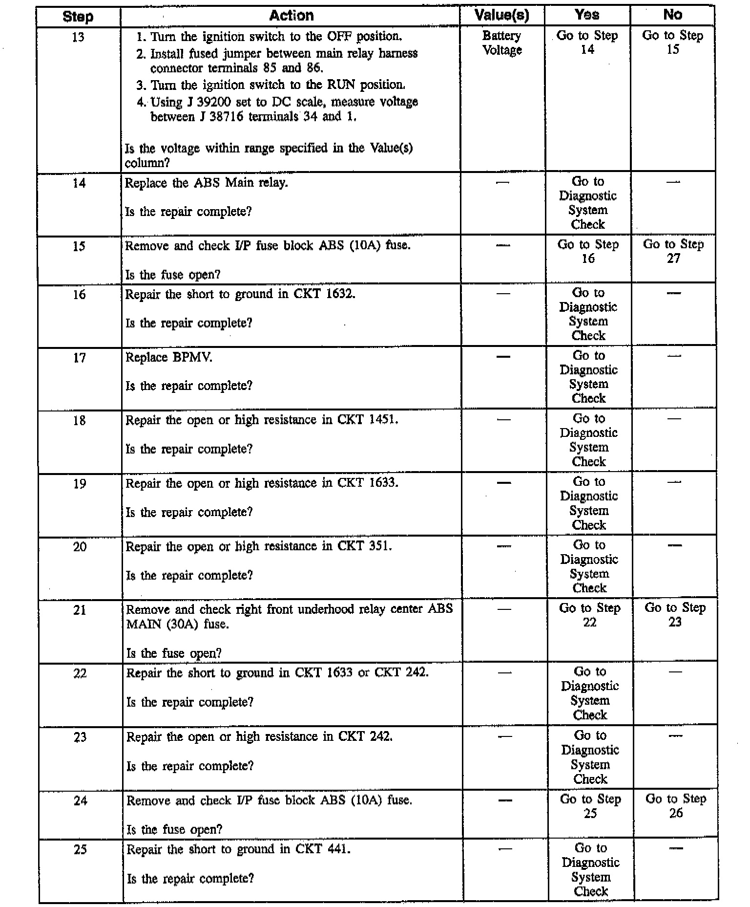 The numbers below refer to step numbers on the diagnostic table.