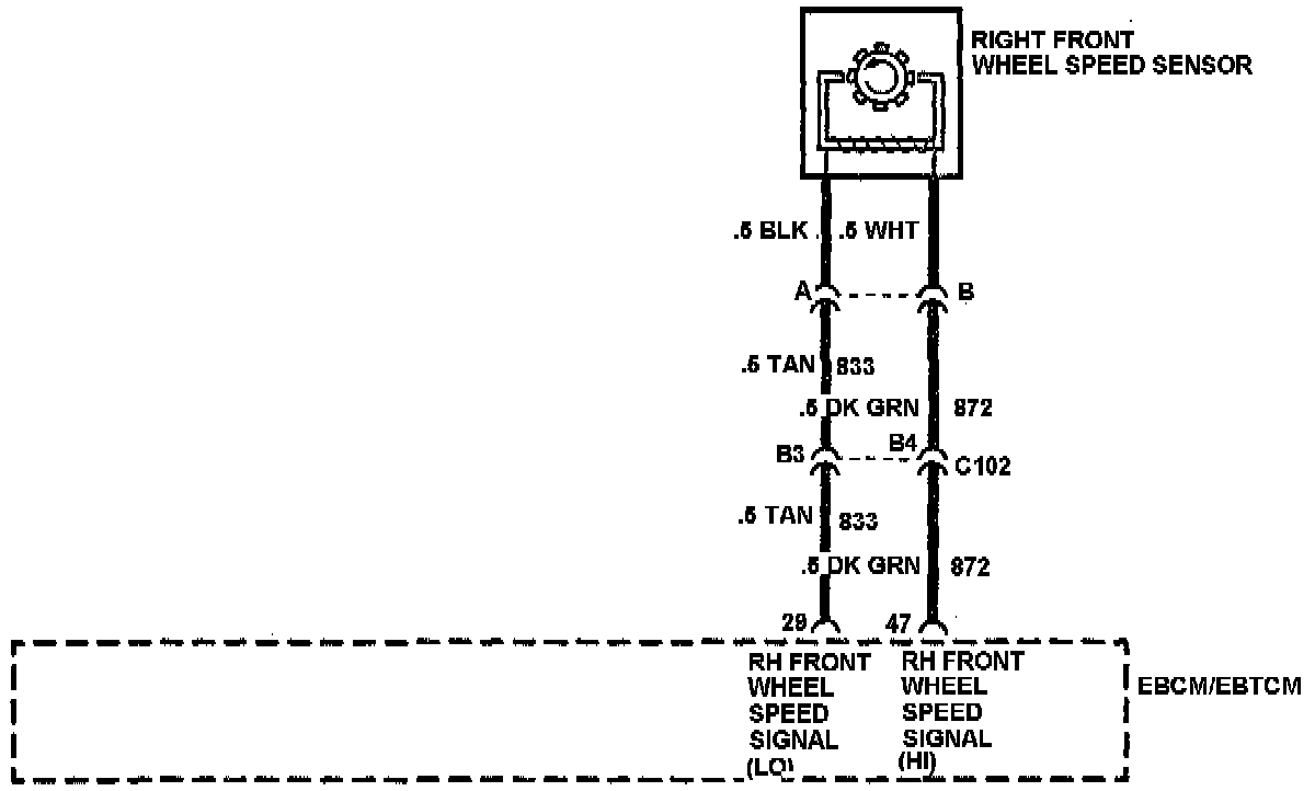 The Electronic Brake/Traction Control Module (EBCM/EBTCM) uses the wheel speed sensor signal to calculate vehicle reference speeds, and individual wheel speed, acceleration and slip values. These values are used to determine when antilock control is required. Vehicles equipped with traction control also use front wheel speed sensor signals to determine when traction control is required.