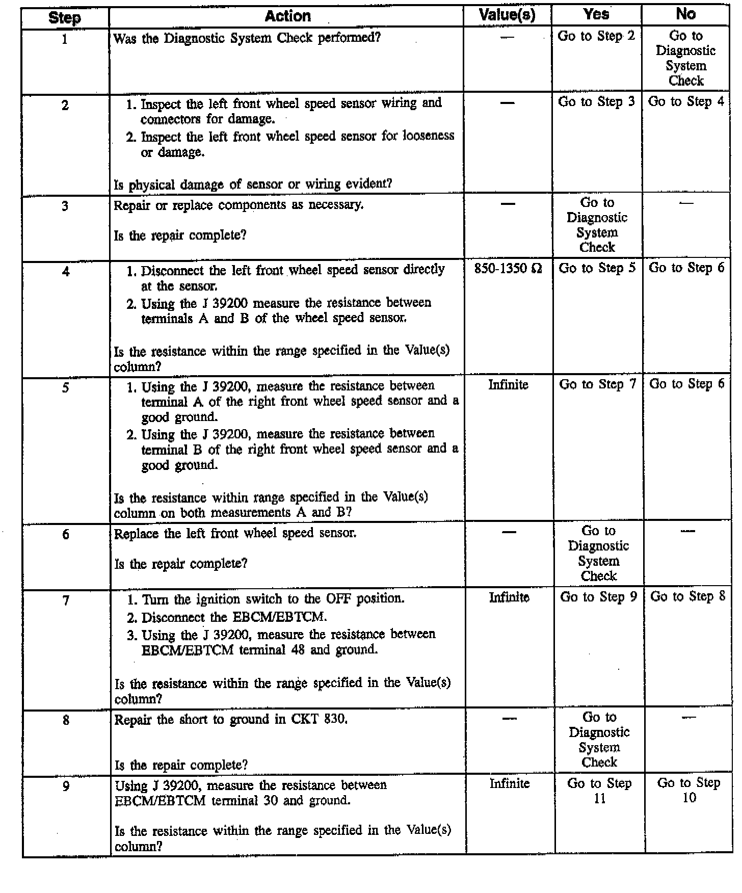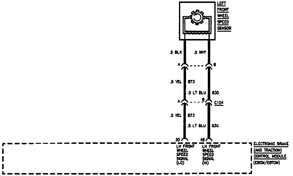 Any condition which would result in lack of continuity in the front wheel speed sensor circuit could result in a DTC C1225 being set. These conditions include an open, a short to ground, or a short between the two wheel speed sensor circuits in the wiring harness between the speed sensor and EBCM/EBTCM. Also an open or short to ground across the wheel speed sensor coil could trigger this code.