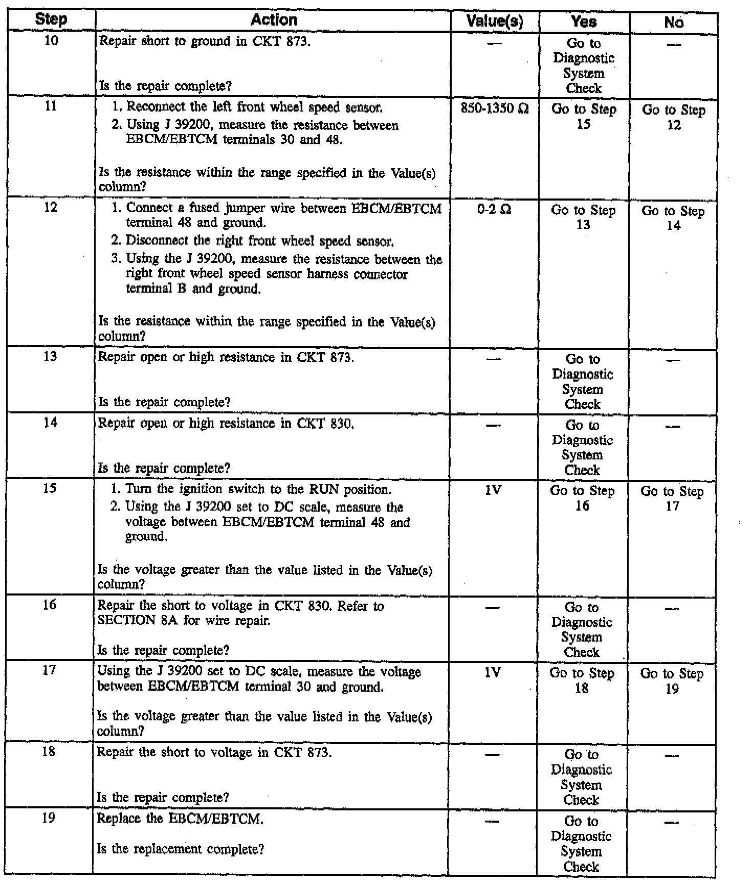 The EBCM/EBTCM performs two basic checks on the wheel speed sensors: sensor continuity and sensor output. When the ignition is first turned to RUN, the EBCM/EBTCM performs the wheel speed sensor continuity check.