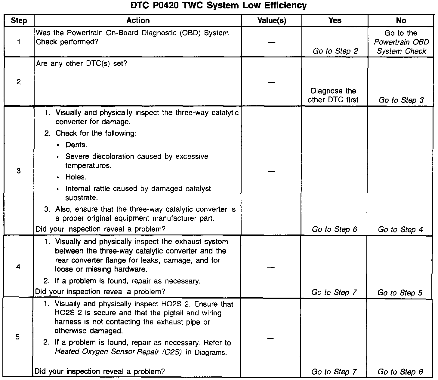 Number(s) below refer to the step number(s) on the Diagnostic Table: