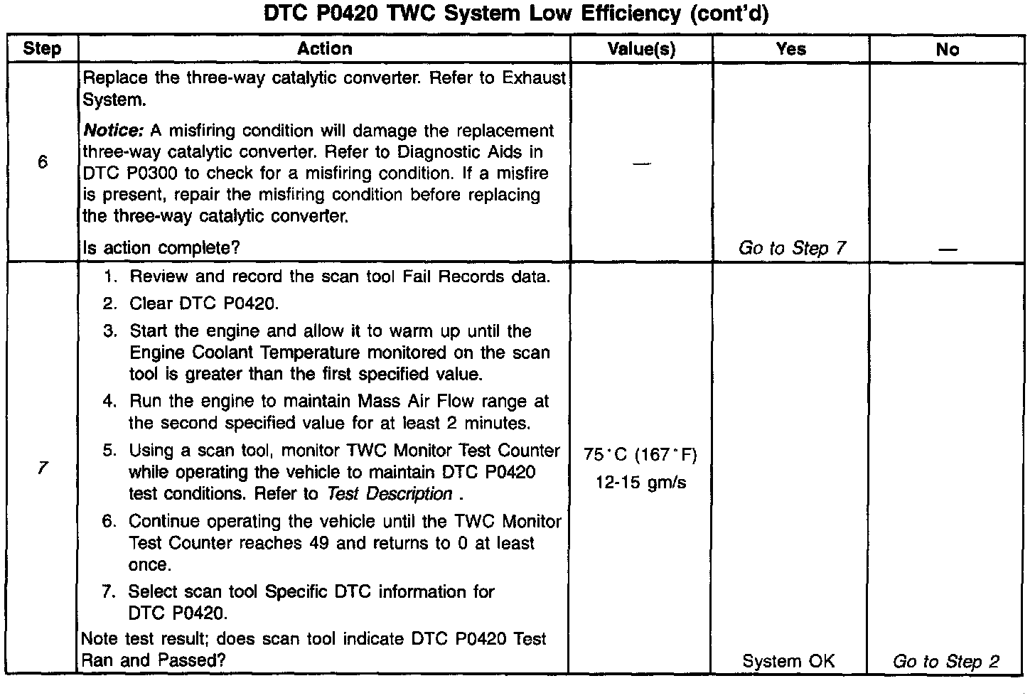 ^ The TWC Monitor Test Counter display on the scan tool may be used to monitor the progress of the TWC diagnostic. To complete the TWC diagnostic, the counter must be allowed to increment to 49 and roll over to 0 at least once. With a failed TWC, the counter may have to increment to 49 and roll over to 0 three times or more.