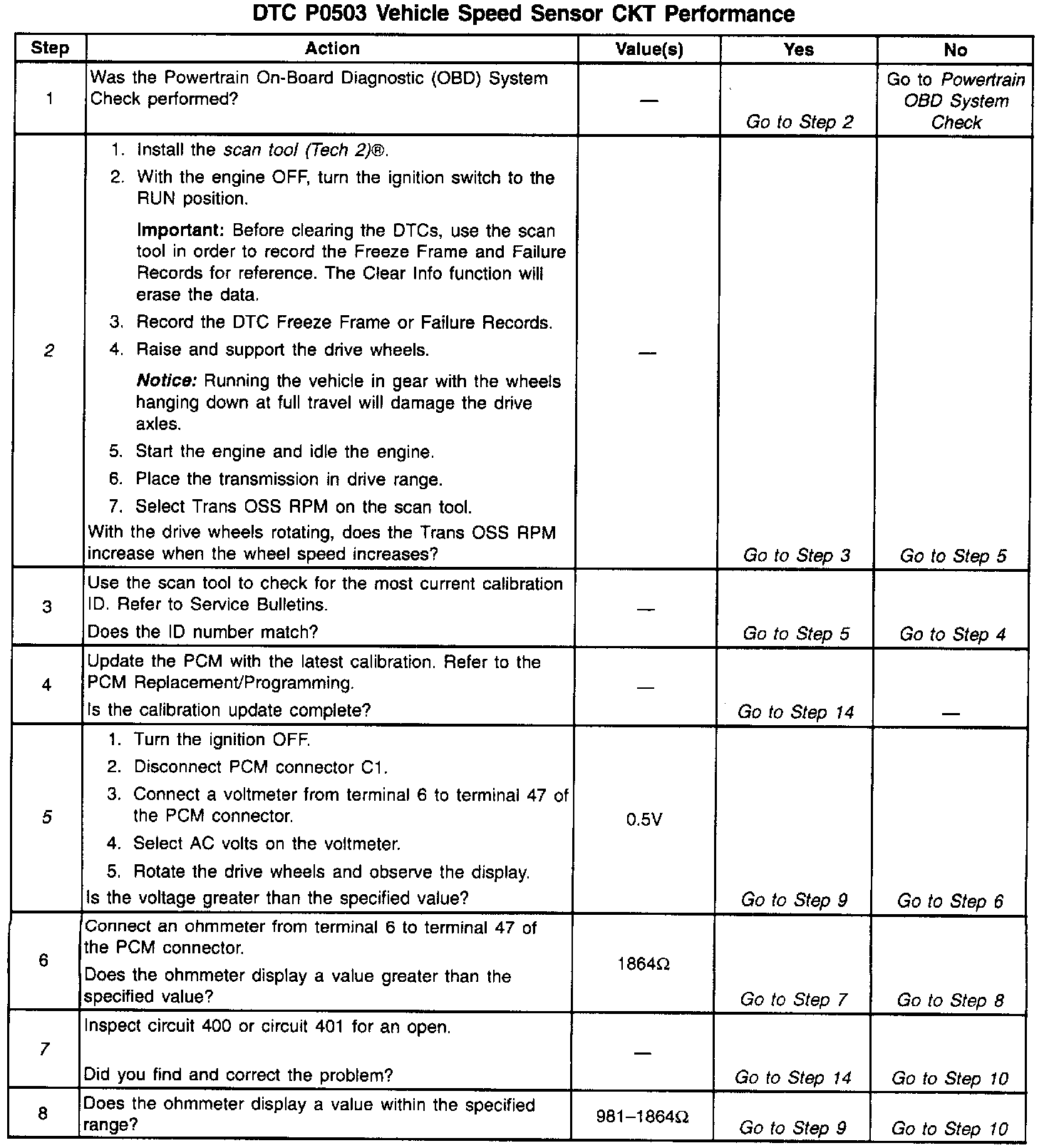 When the PCM detects a large change in vehicle speed, then DTC P0503 sets. DTC P0503 is a Type B DTC.