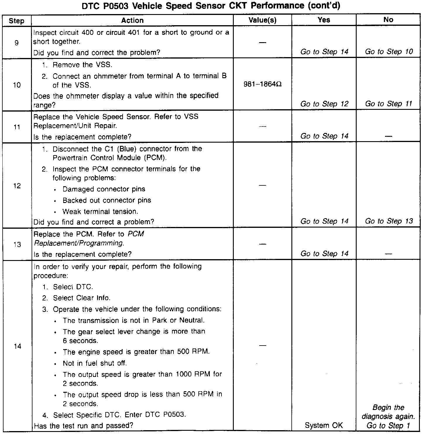 7. This step performs a resistance check on circuits 400 and 401 from the PCM to the VSS. Circuit 400 and Circuit 401 must be checked for an open.