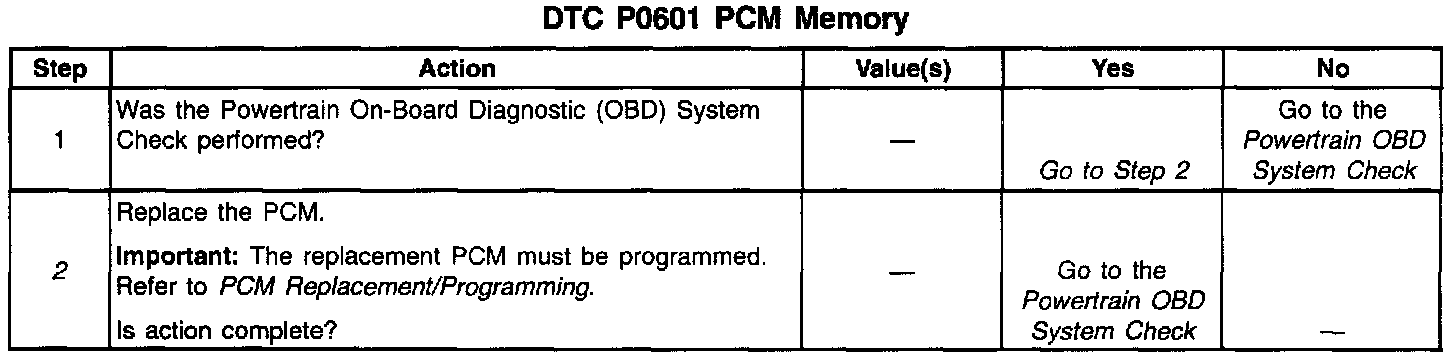 DTC P0601 indicates that the contents of the EEPROM have changed since the PCM was programmed. The only possible repair is PCM replacement. Remember to program the replacement PCM with the correct software and calibration for the vehicle.