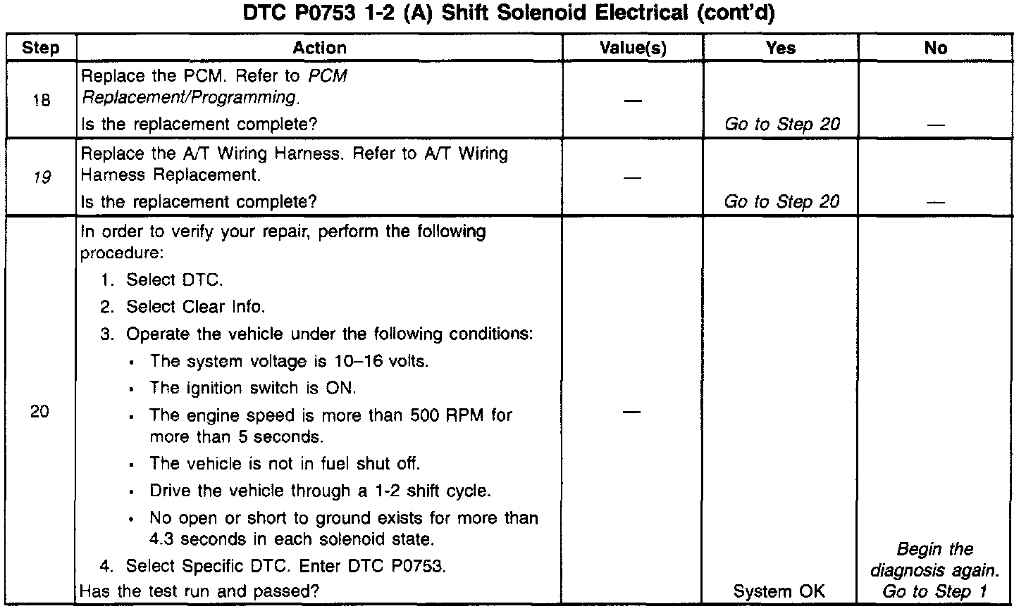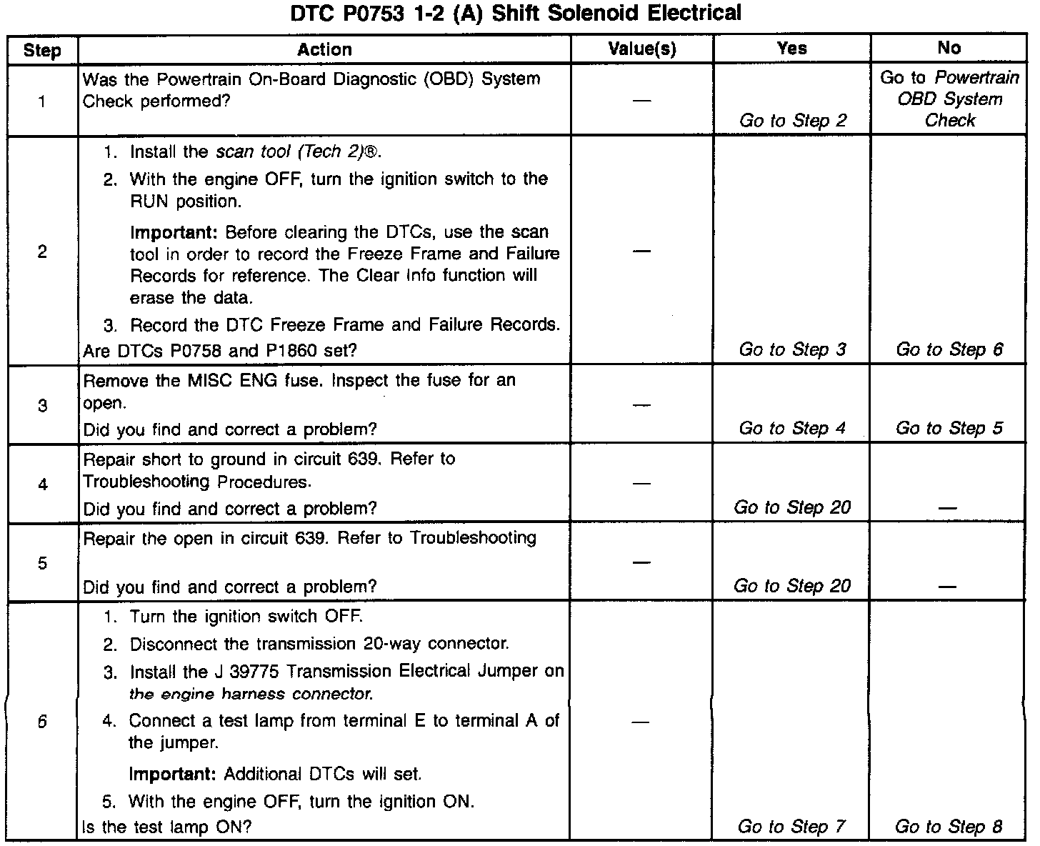 When the PCM detects a continuous open or a short to ground in the 1-2 SS Valve circuit or the 1-2 SS Valve then DTC P0753 sets. DTC P0753 is a type DTC.