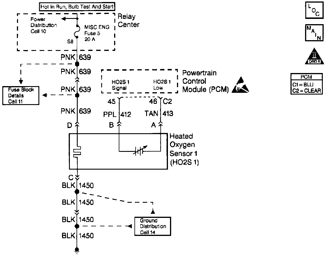 A poor connection in the HO2S heater ignition feed or ground circuit may cause the DTC to set. Check HO2S heater circuitry for intermittent malfunctions or poor connections. If connections and wiring are OK and the DTC continues to set, replace the HO2S 1.