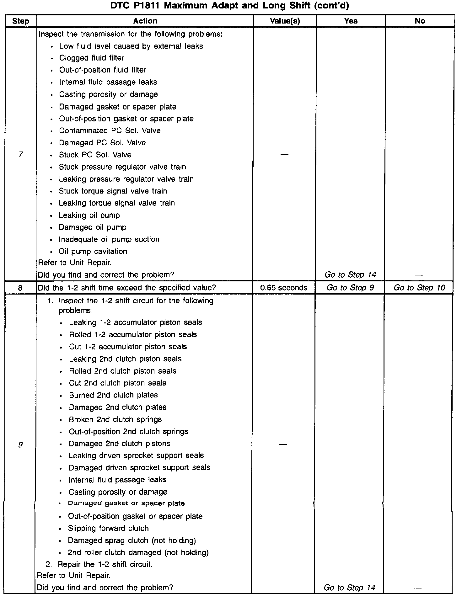 9. This step inspects or repairs any of the components listed. A faulty component may lead to a maximum adapt and long shift during a 1-2 upshift.