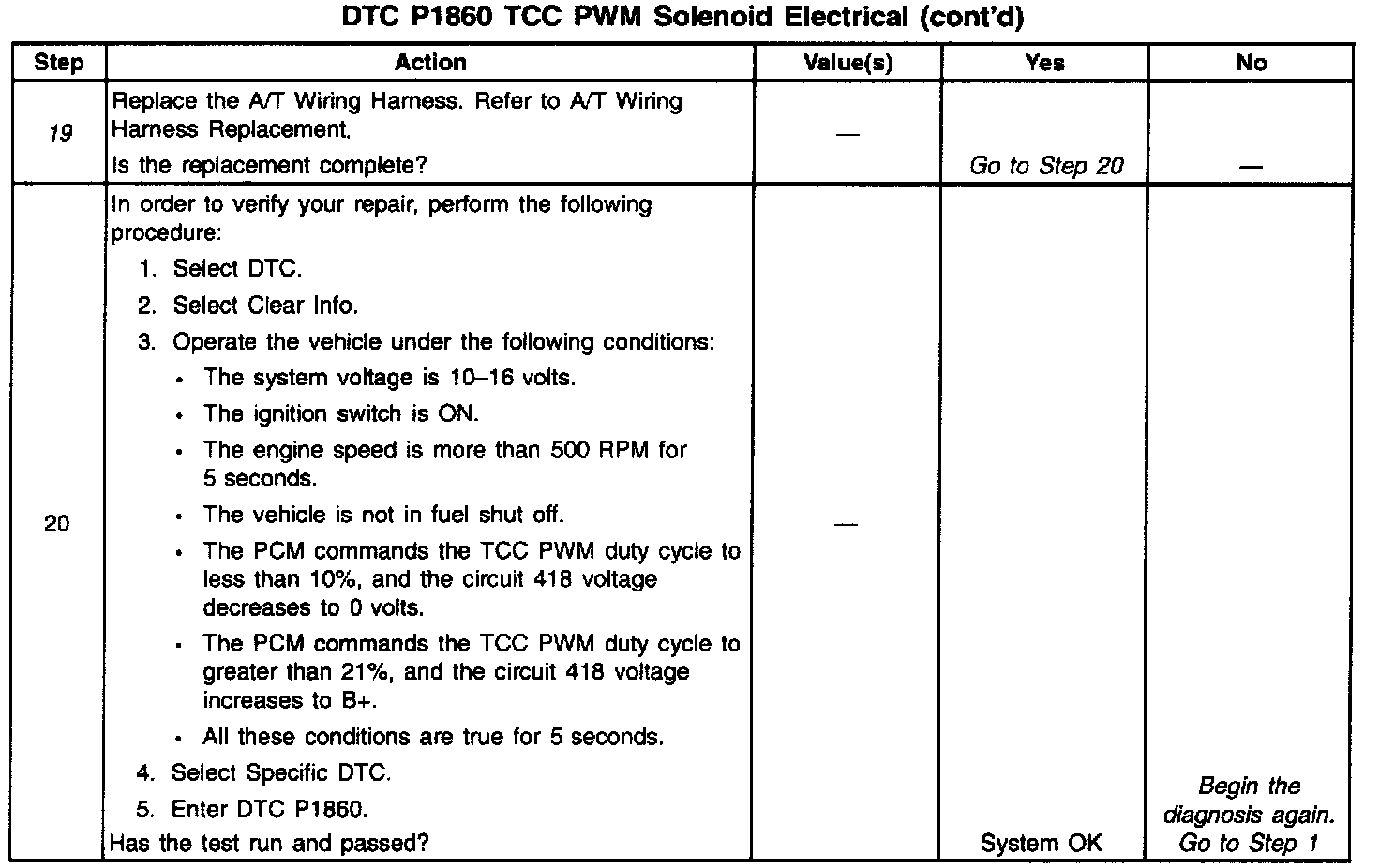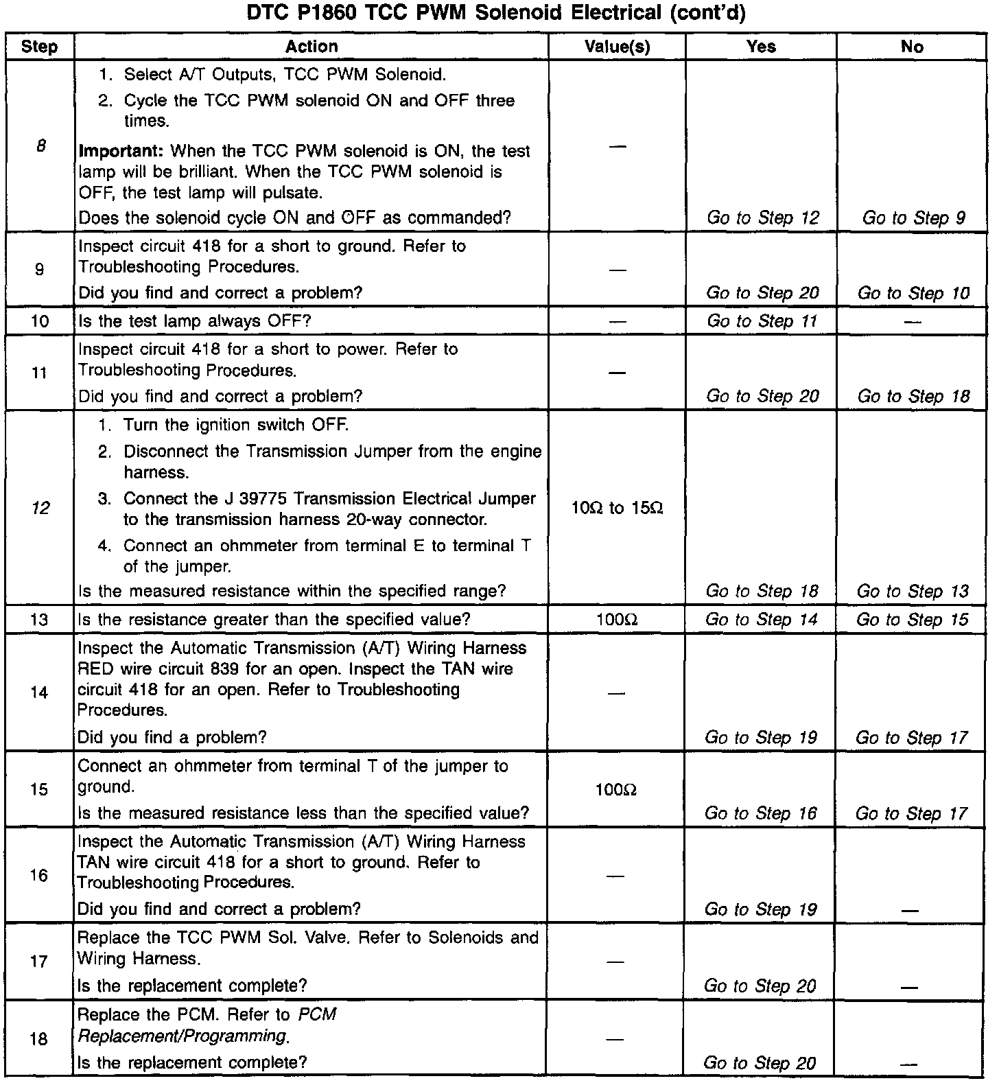 12. This step verifies that the TCC PWM solenoid is not shorted across its windings or increased its resistance.