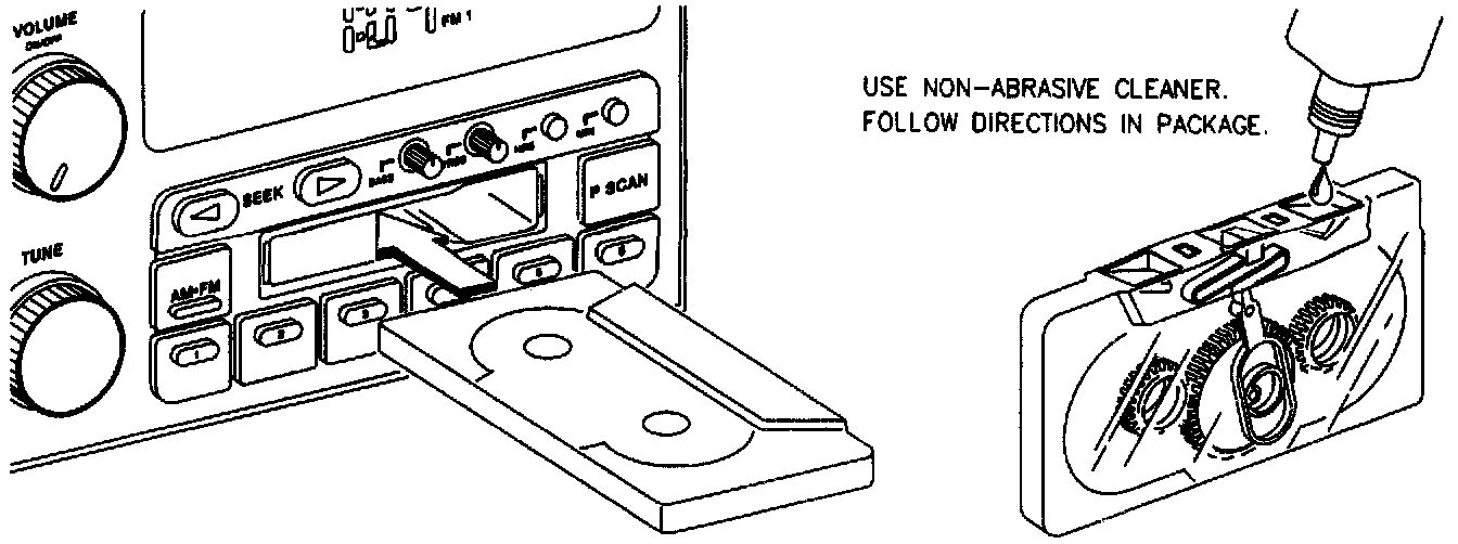 There are two parts that are cleaned on a tape player: the head and the capstan. Since they can he reached through the tape door, leave the tape player in the vehicle. This service should be performed every 50 hours of operation.