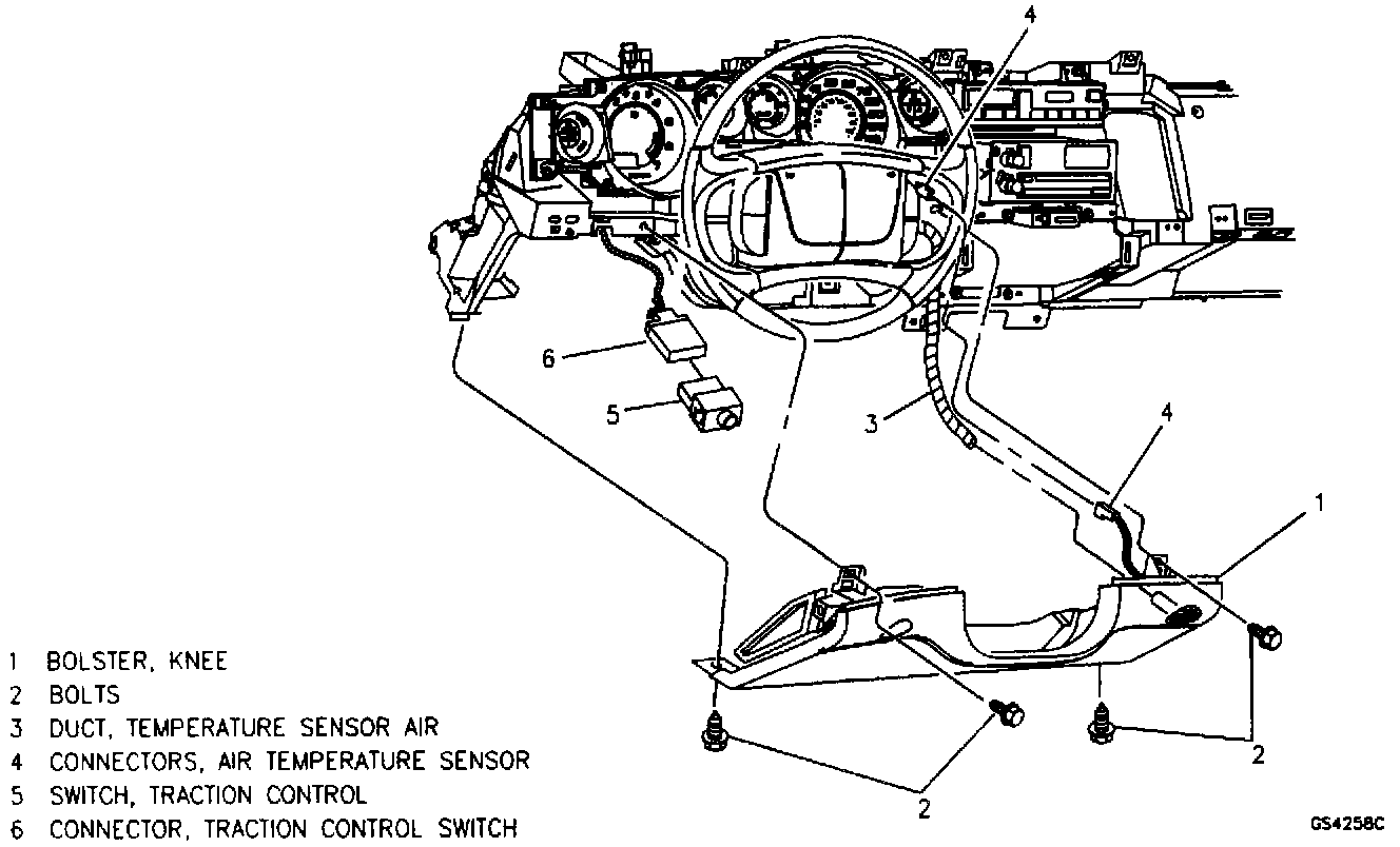 1. Traction control switch and air temperature sensor to knee bolster.