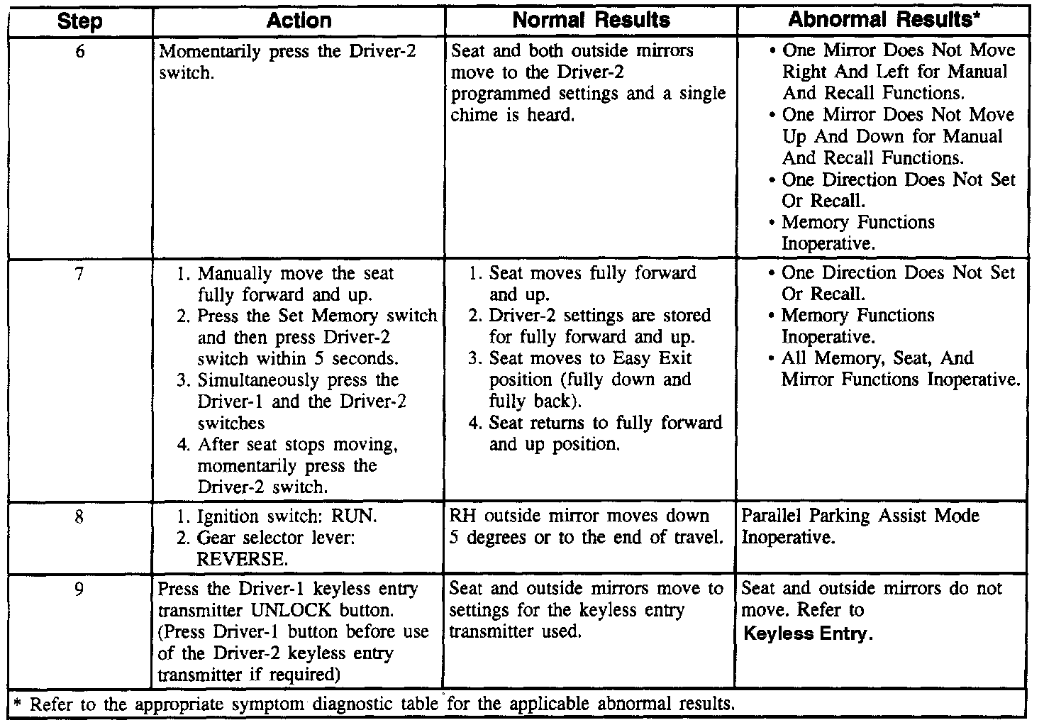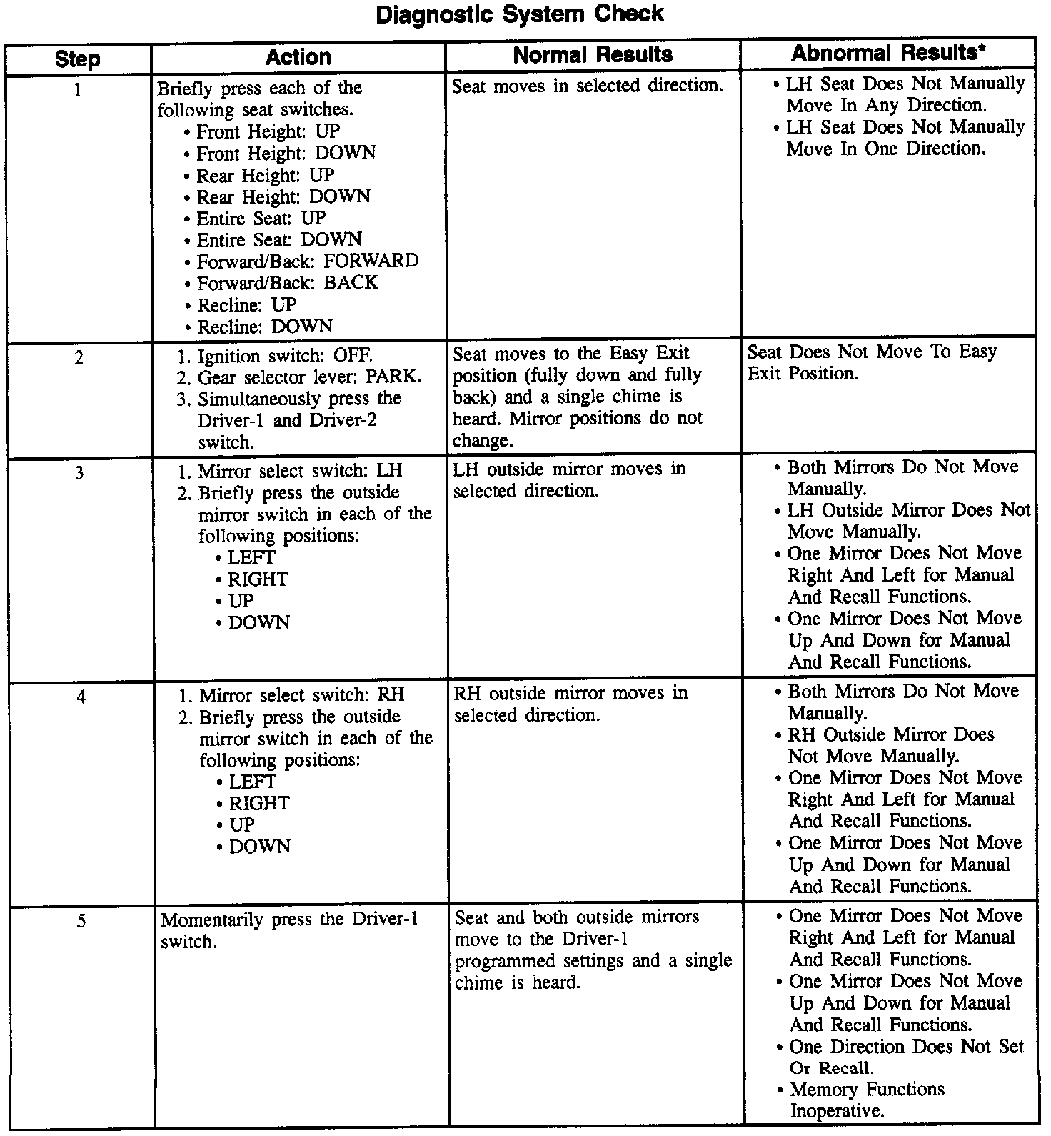 Diagnostic System Check - Memory Seats