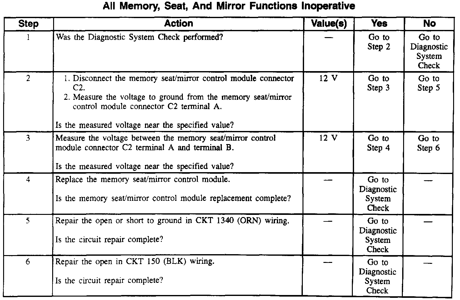 Diagnosis By Symptom - Memory Seats