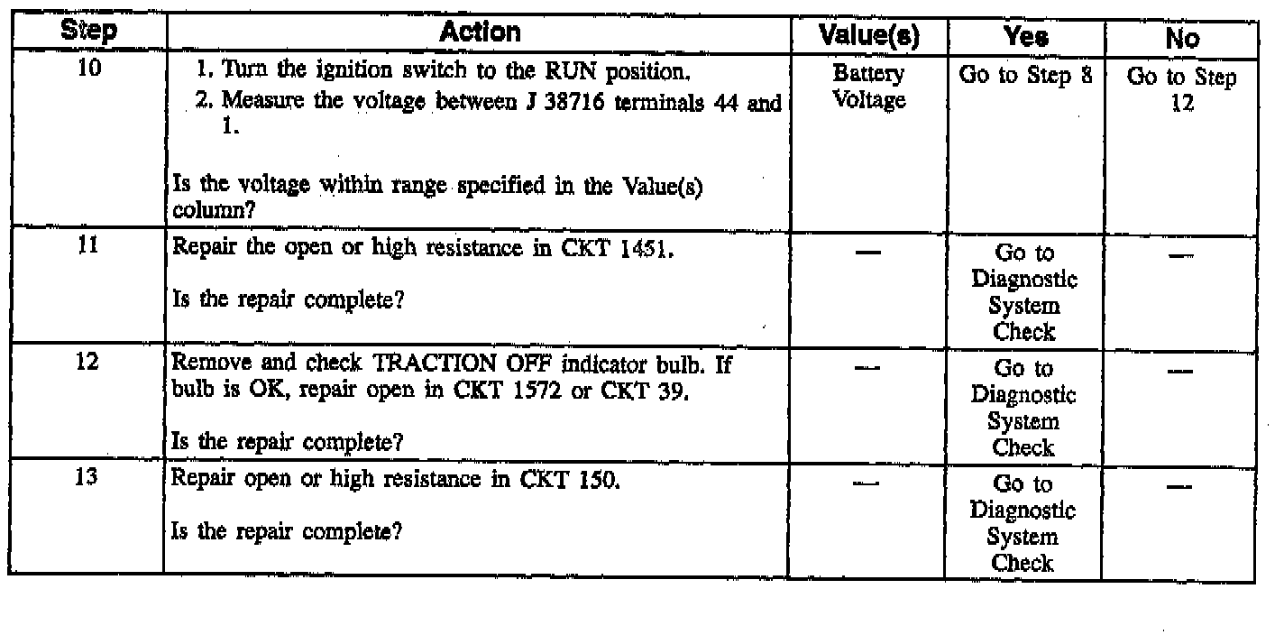 Table D Traction Off Indicator Inoperative