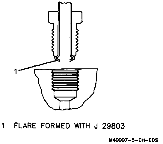 4. Chamfer the inside and outside diameter of tubing with the deburring tool. Then flare the tubing ends using an ISO flaring tool, such as J 29803-A. Follow the instructions included with the tool.