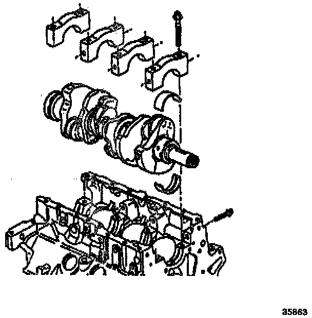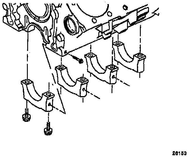 CAUTION: In order to prevent the possibility of cylinder block or crankshaft bearing cap damage, the crankshaft bearing caps are tapped into the cylinder block cavity using a brass, lead, or a leather mallet before the attaching bolts are installed. Do not attach the bolts to pull the crankshaft bearing caps into the seats. Failure to observe this information may damage a cylinder block or a bearing cap.