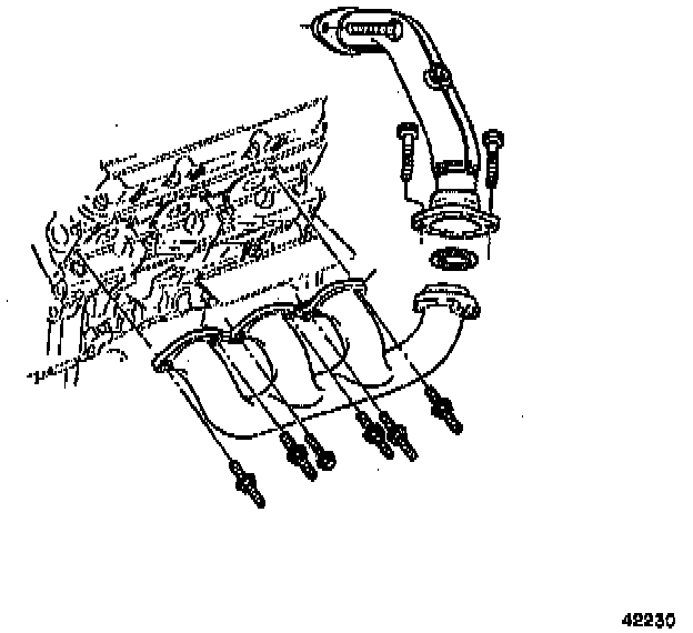 4. Install the two bolts attaching the left exhaust manifold to the exhaust crossover pipe.