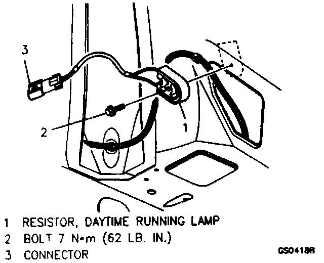 2. Daytime running lamp resistor to front fender.