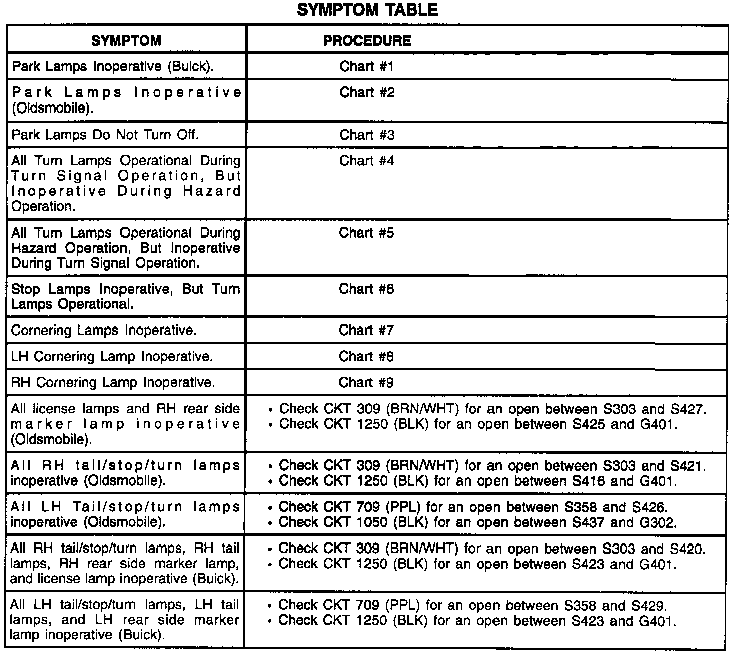 A Symptom Table - Exterior Lights