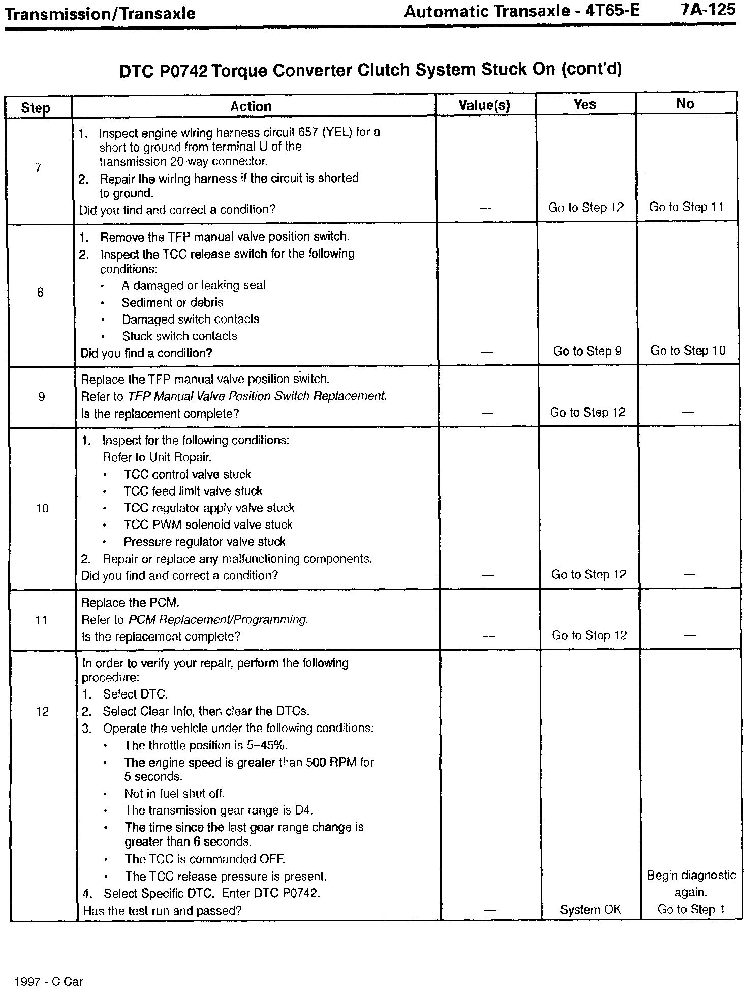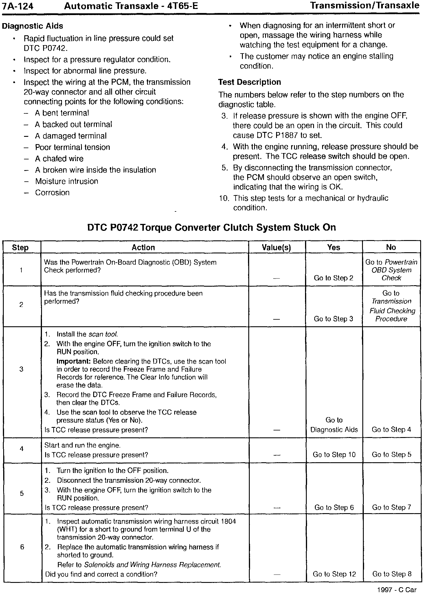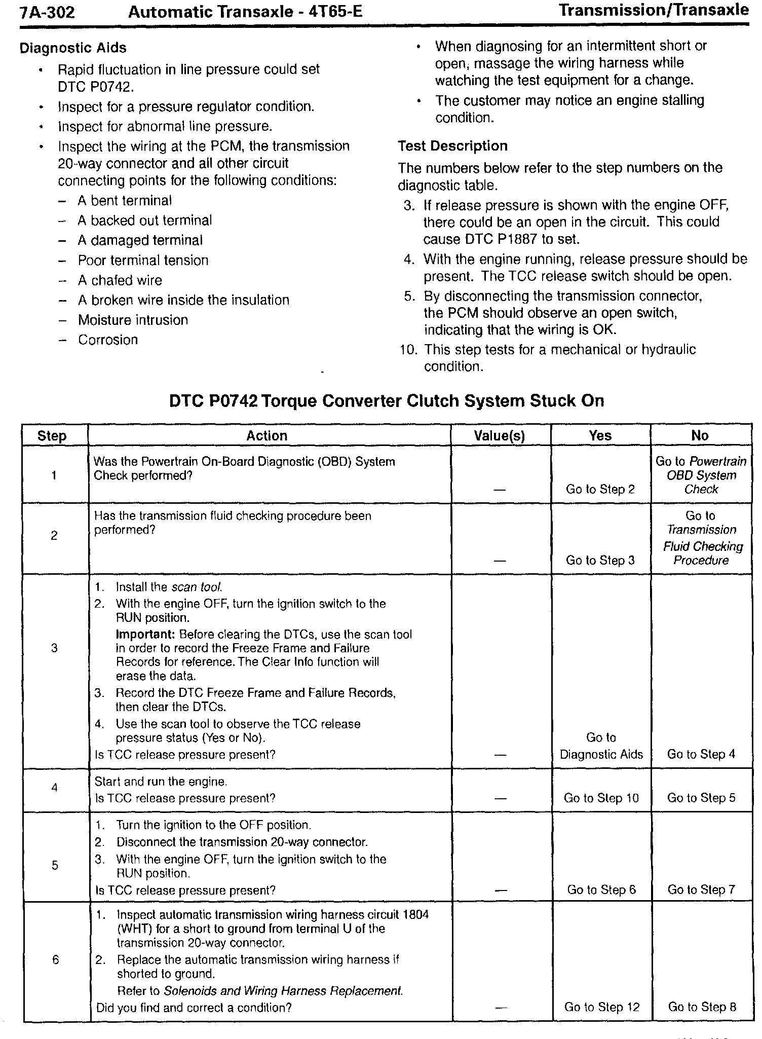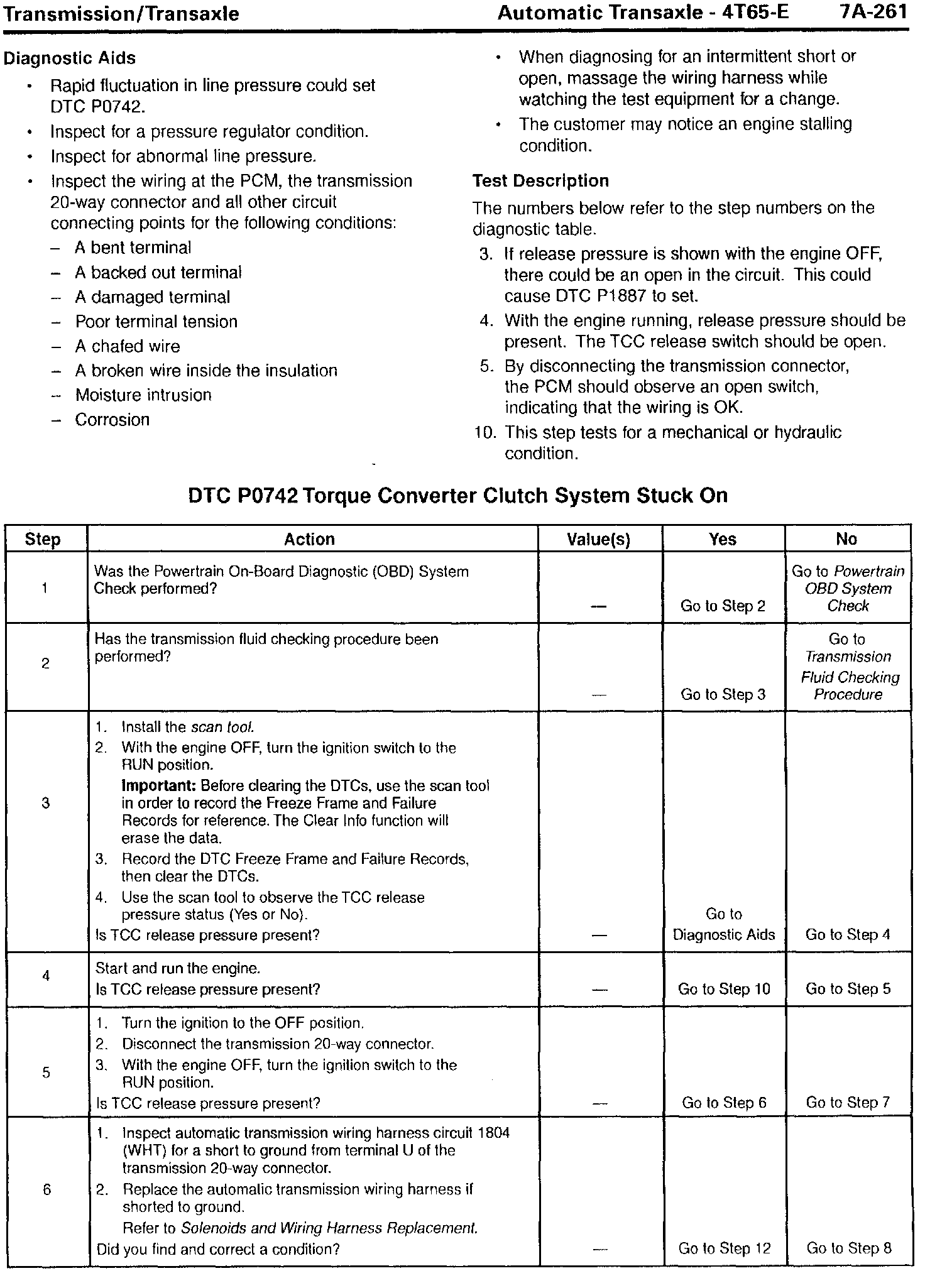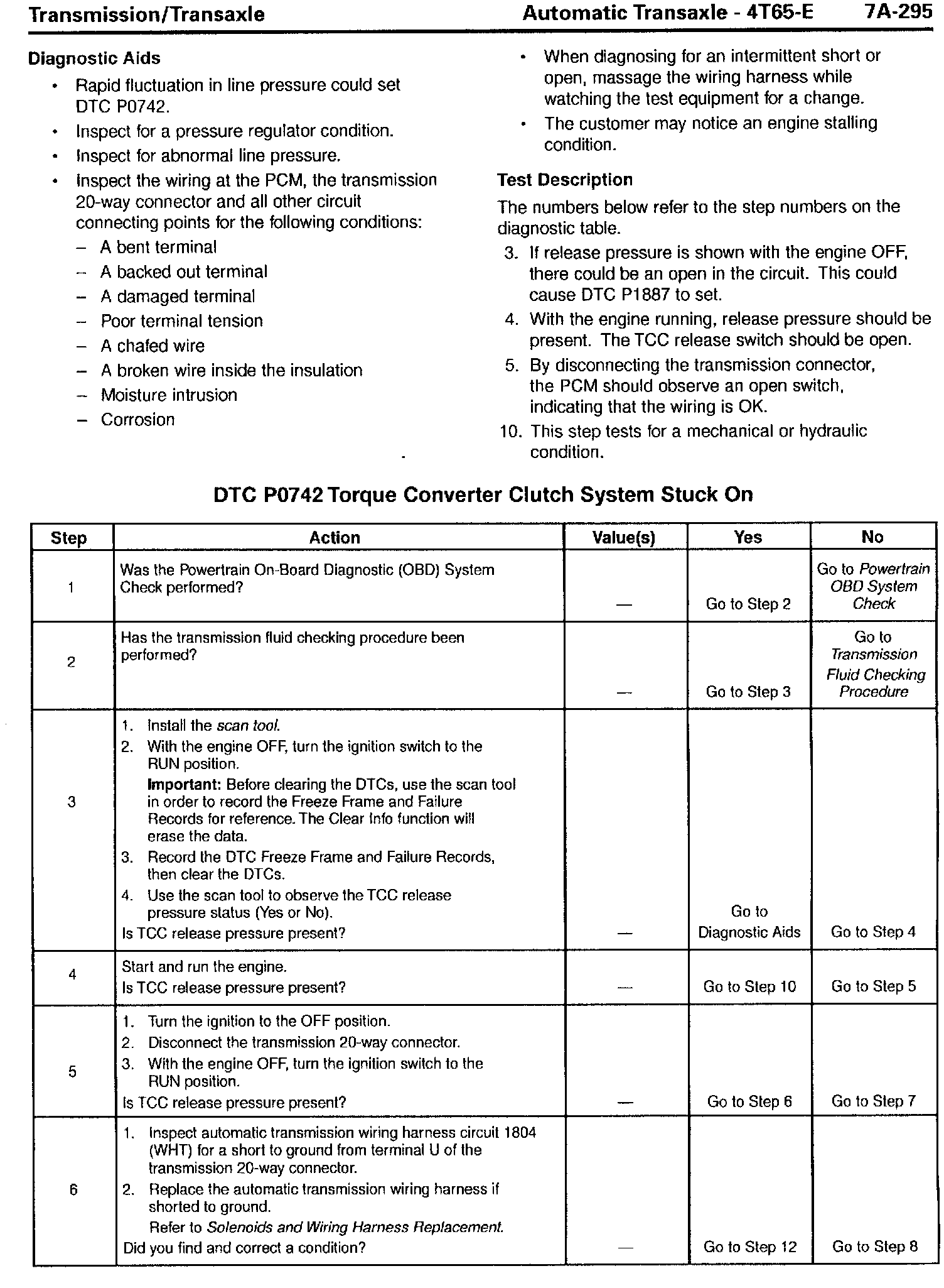 Section 7A - Transaxle/Transmission - Revisions for DTC P0742, TCC Stuck On