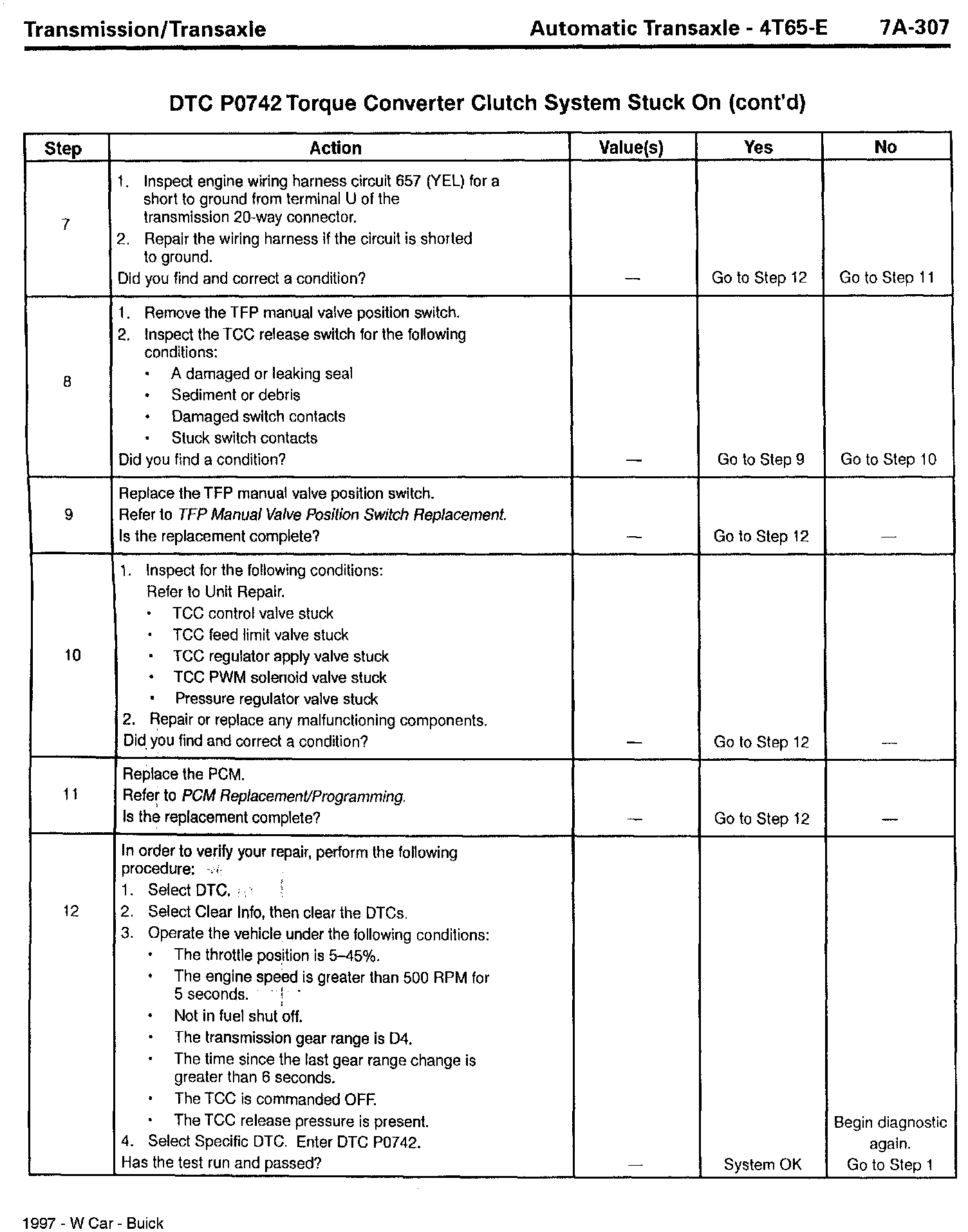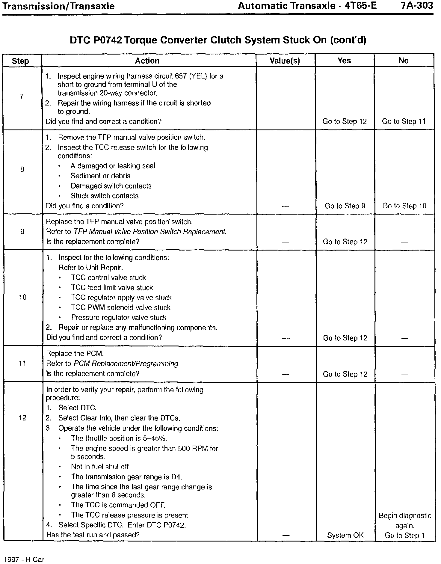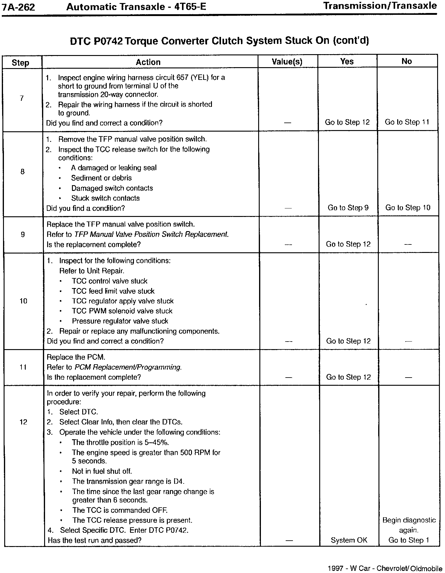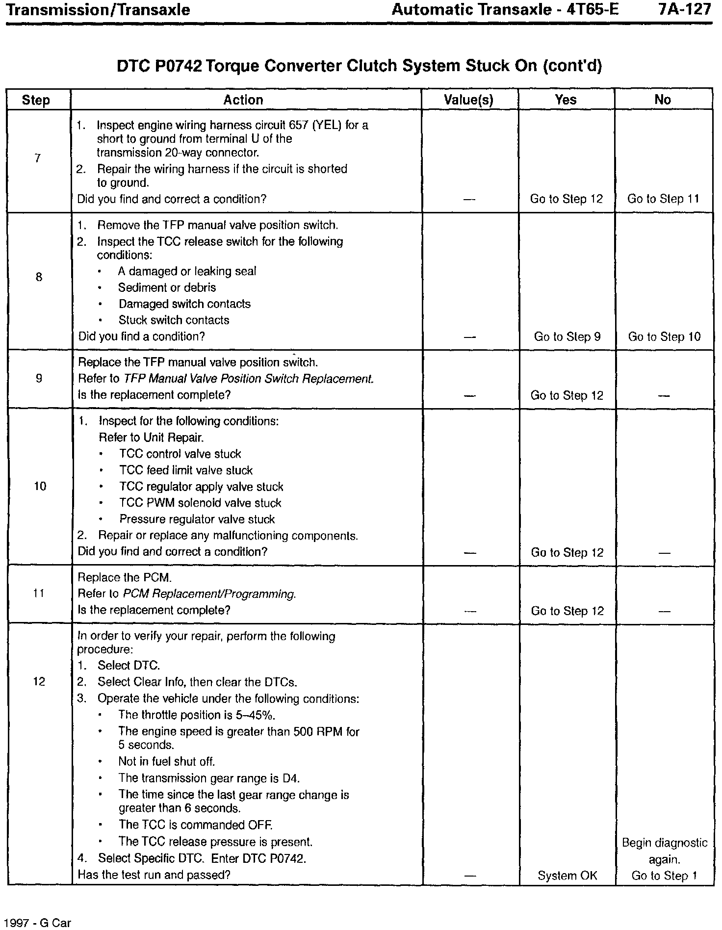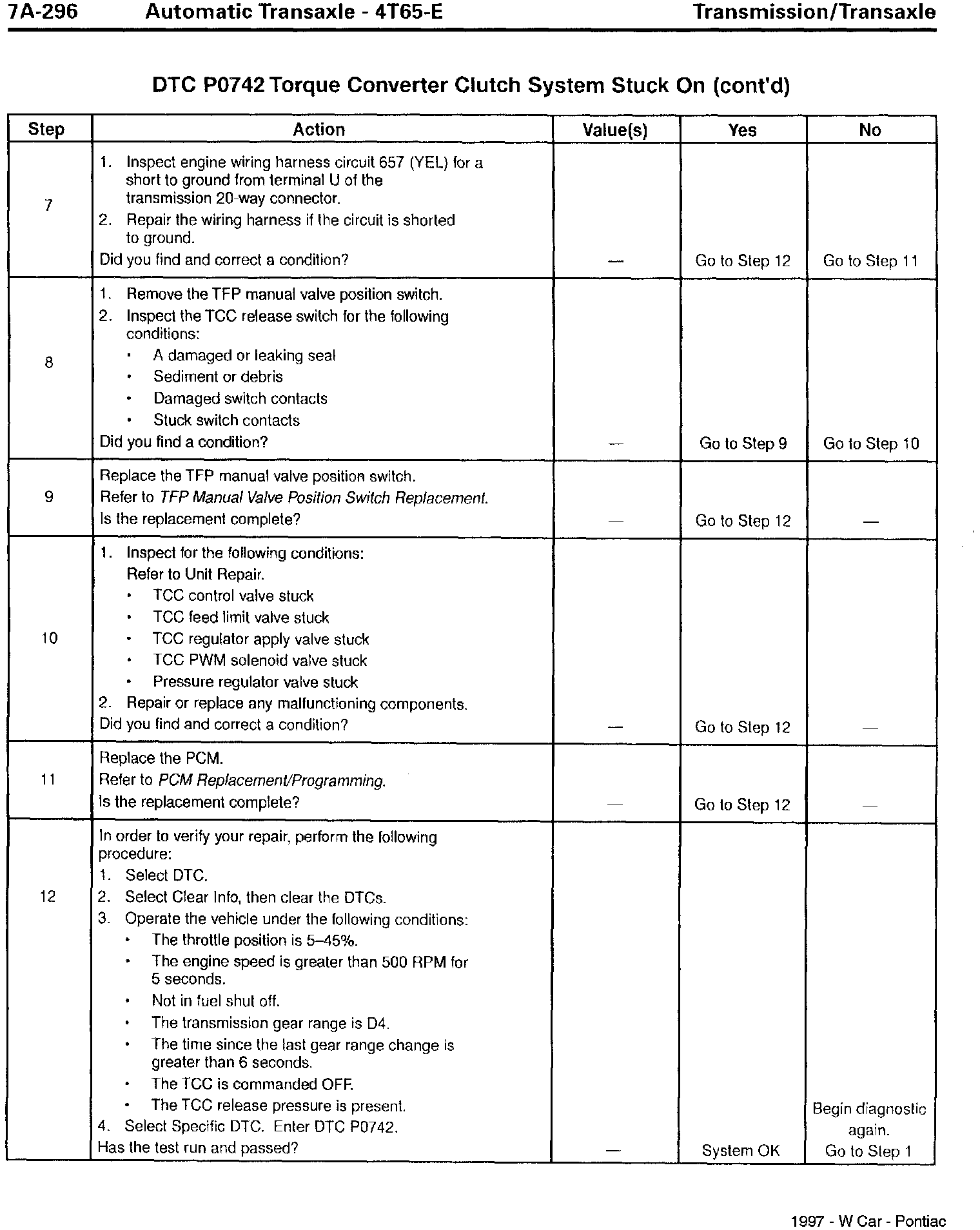 Section 7A - Transaxle/Transmission - Revisions for DTC P0742, TCC Stuck On