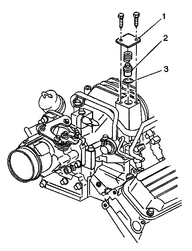 1. While holding down crankcase ventilation valve access cover (1), remove 2 cover retaining bolts.