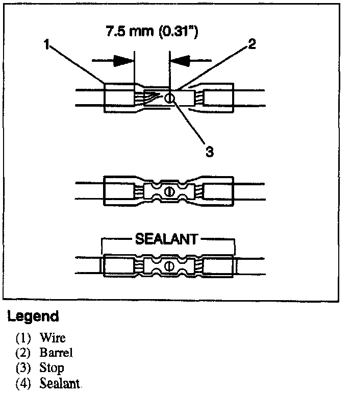 ^ Do not use the crimp and sealed splice sleeve to form a splice with more than two wires corning together.