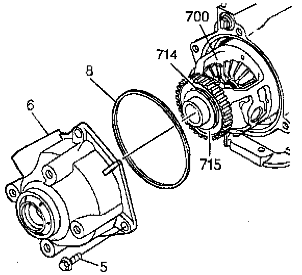 1. Make sure that the thrust washer (714) and the bearing (715) are still on the front differential carrier.