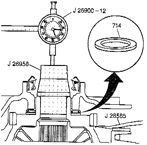 9. Note the dial indicator reading before changing the carrier thrust washer (714).
