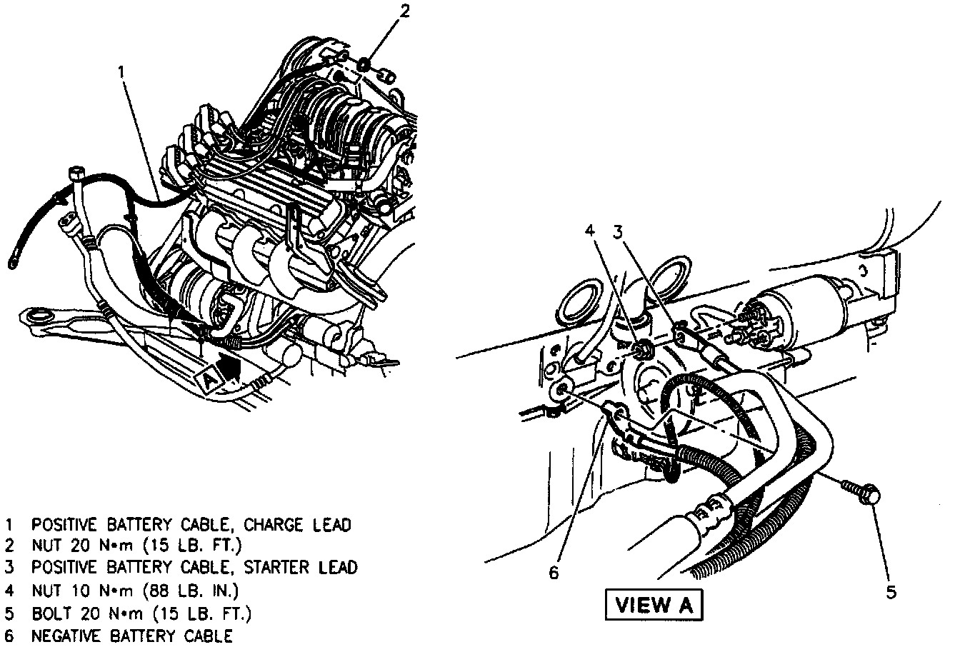 Whenever battery cables are replaced, be sure to use a replacement cable that is the same type and length. Some positive cables have additional feed wires attached to them and some negative cables have additional ground leads attached.