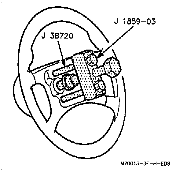 5. Steering wheel, using J 1859-03 and J 38720. Be sure to use the correct side screws for pulling the wheel.