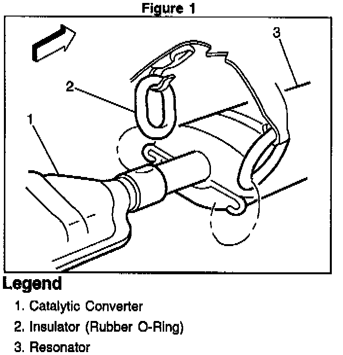 The above listed models are built with the front exhaust hanger insulators (rubber 0-rings) removed (see Figure 1). These insulators (rubber 0-rings) have been removed to improve the level of exhaust noises. The hanger brackets welded to the body and exhaust are still present on the vehicle. Dealer technicians may notice the absence of these insulators (rubber 0-rings) at the rear of the catalytic converter. Dealer technicians SHOULD NOT install insulators at this location as they have been removed to reduce exhaust noises. The brackets will be removed from the vehicle underbody and exhaust on future builds.