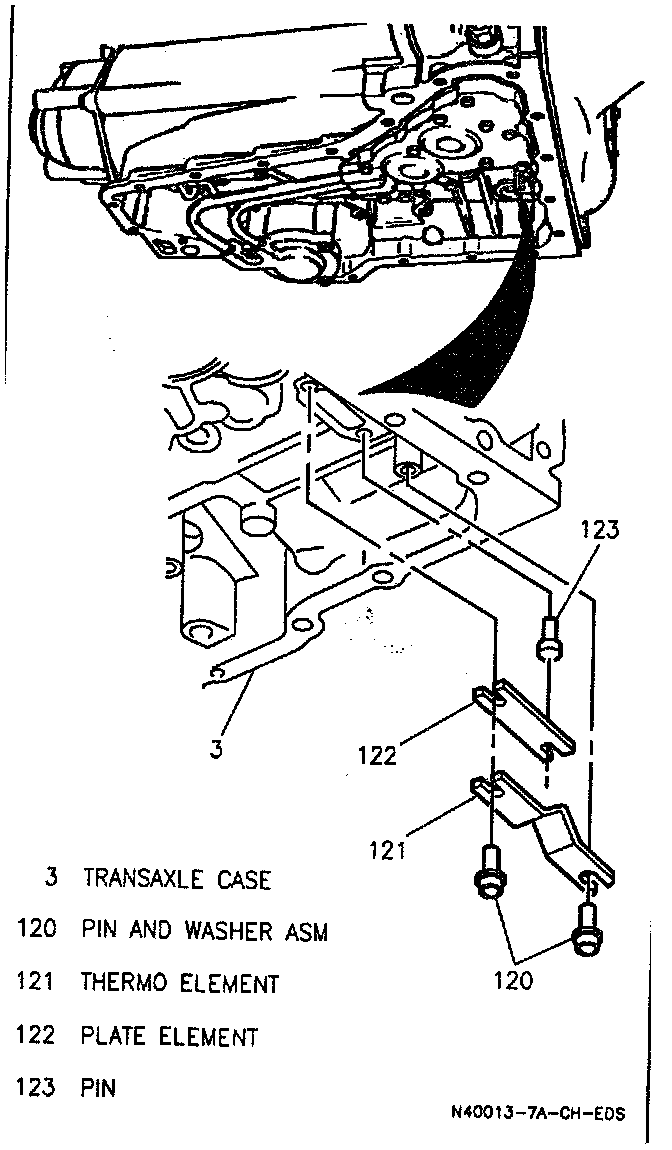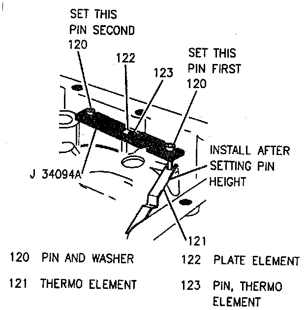 4. Thermo element between the two pins without bending the element too much. "V" in Thermo Element must contact the element plate.