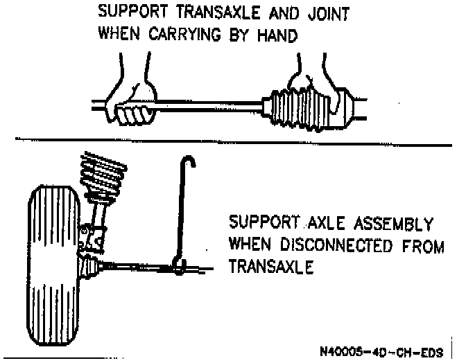 NOTICE: Care must be exercised to prevent inboard joints from being over-extended. When either end of the shaft is disconnected, over-extension of the joint could result in separation of internal components and possible joint failure.
