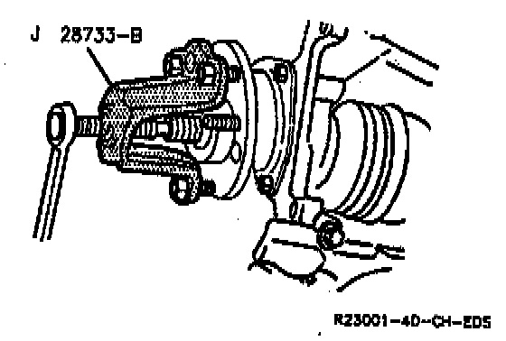 7. Axle from hub, using J 28733-B; hub nut may be partially installed to protect threads. Move strut and knuckle rearward.