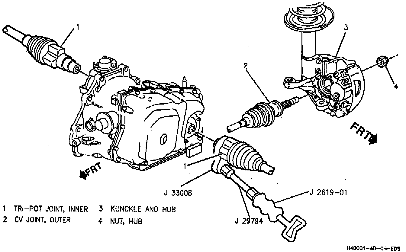 8. Using J 33008 and J 2619-01, drive axle from transaxle.