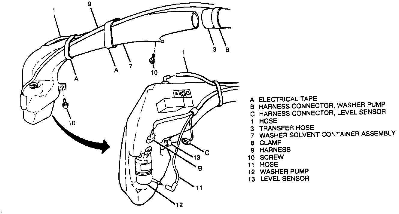 3. ransfer hose (3) from washer solvent container assembly (7).