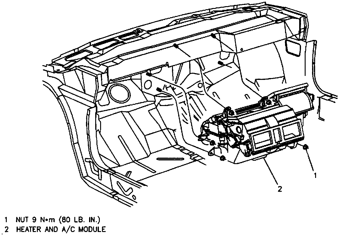 5. Heater hoses from heater core (pinch off hose to prevent leaking).