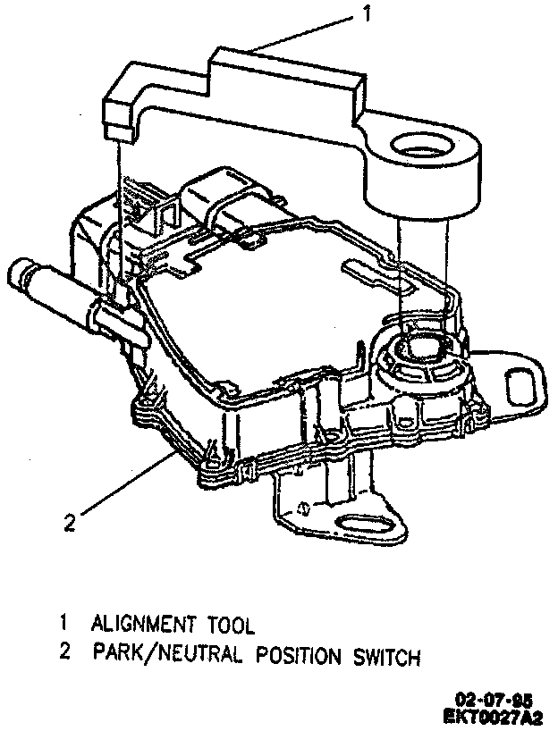 - When installing park/neutral position switch with a sheared pin, insert the alignment tool into the two slots on the switch in the area of the transaxle shaft. Rotate the tool until the rear leg on the tool falls into the slot on the switch near the hose. Verify tool is properly seated in all three slots. Remove tool.