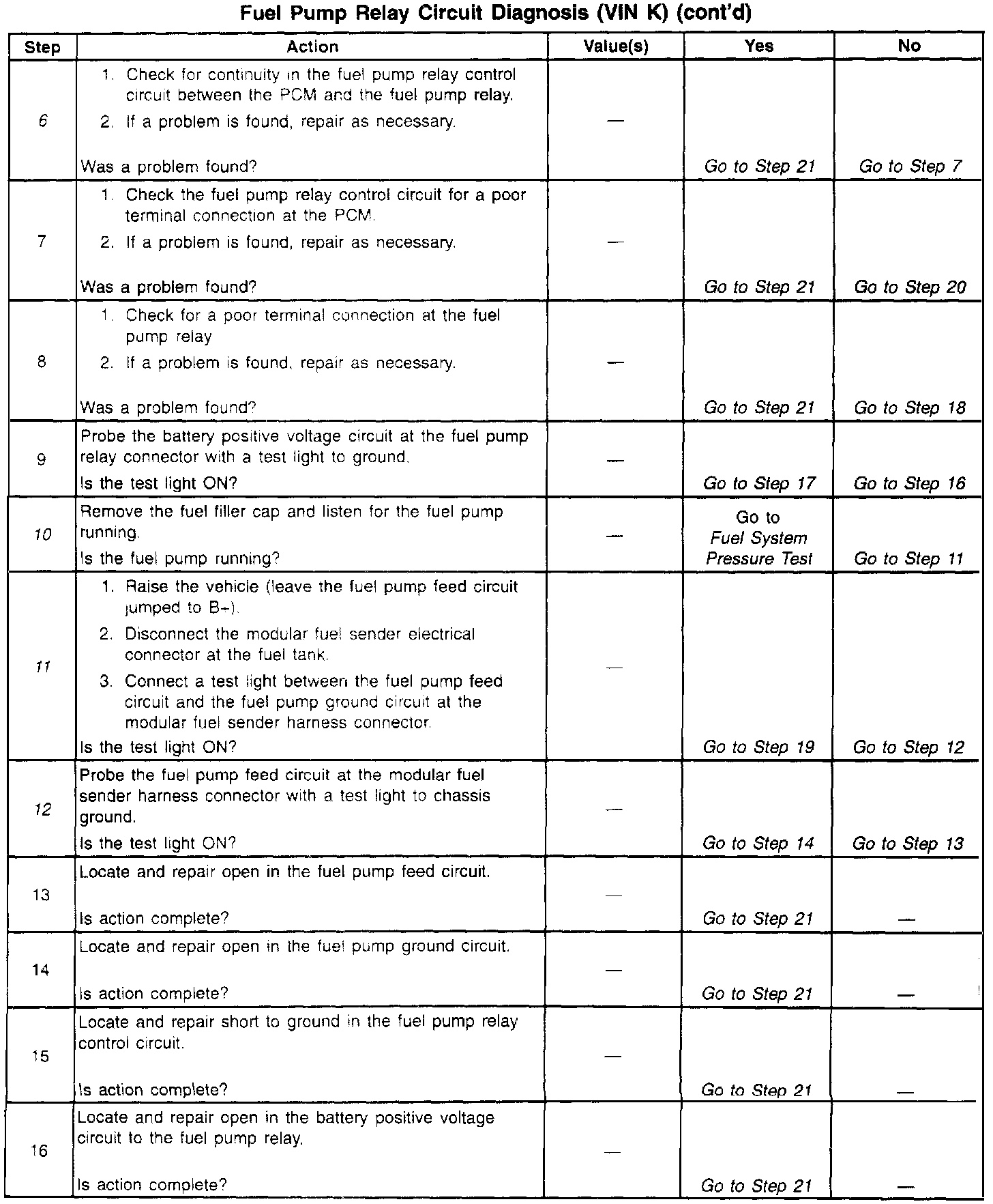 11. Checks the fuel pump feed circuit between the fuel pump relay and the fuel pump. Also checks the fuel pump ground circuit.