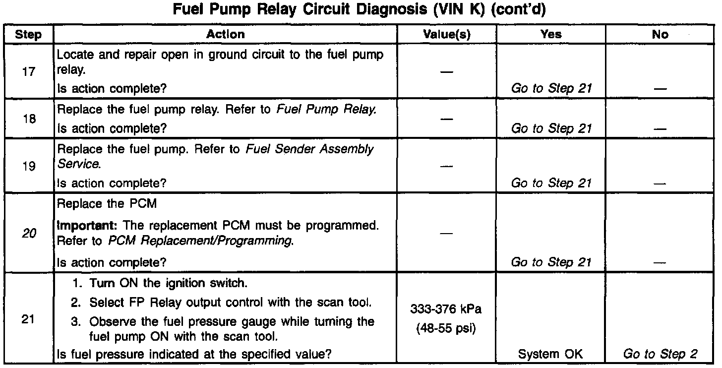 10. If the fuel pump is operating but incorrect pressure is observed, the fuel pump wiring is OK, the Fuel System Pressure Test should be used for diagnosis. System Diagnosis - Fuel System Pressure Test