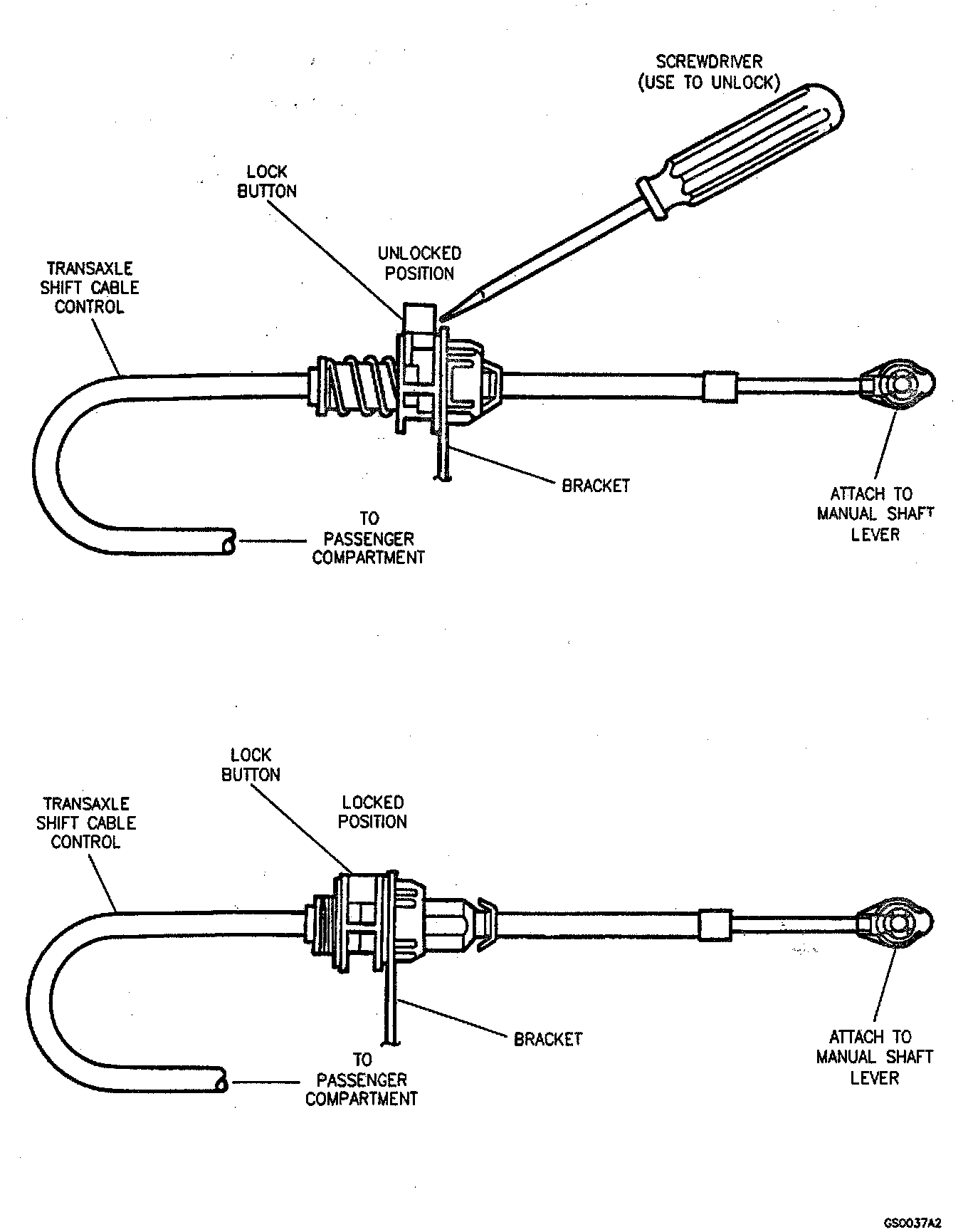 - Pry on the shift cable terminal at the manual shaft lever pin with a appropriate tool. Do Not pry or pull up on any other part of the shift cable - the shift cable could be damaged.