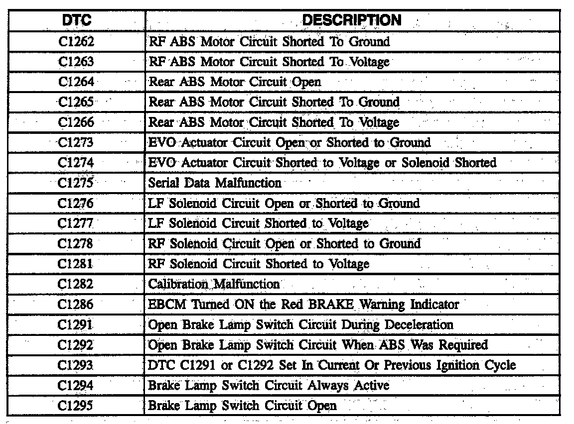 Diagnostic Trouble Code Descriptions